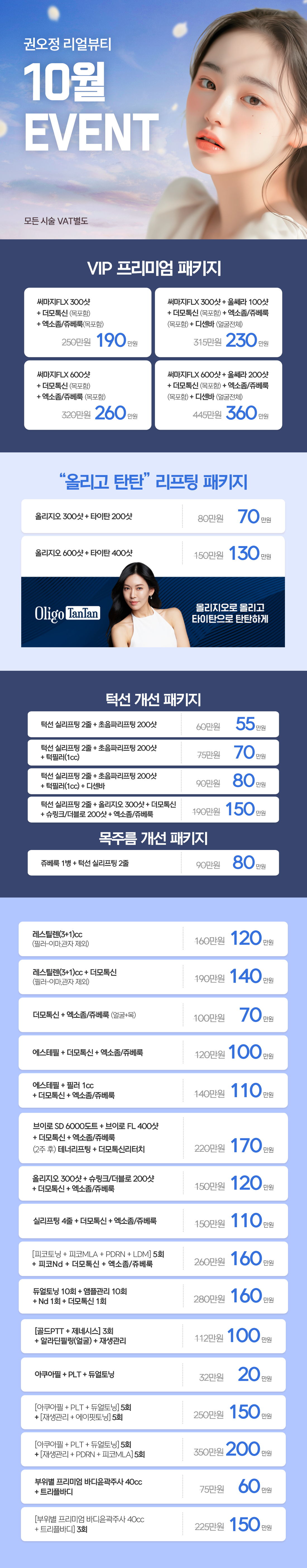 실시간 빠른상담 이름 연락처 010 011 017 018 019 개인정보취급방침 상담신청 권오정리얼뷰티의원 10월 이벤트 작성자 : 리얼뷰티 작성일 : 2025-09-30 조회수 : 268 목록