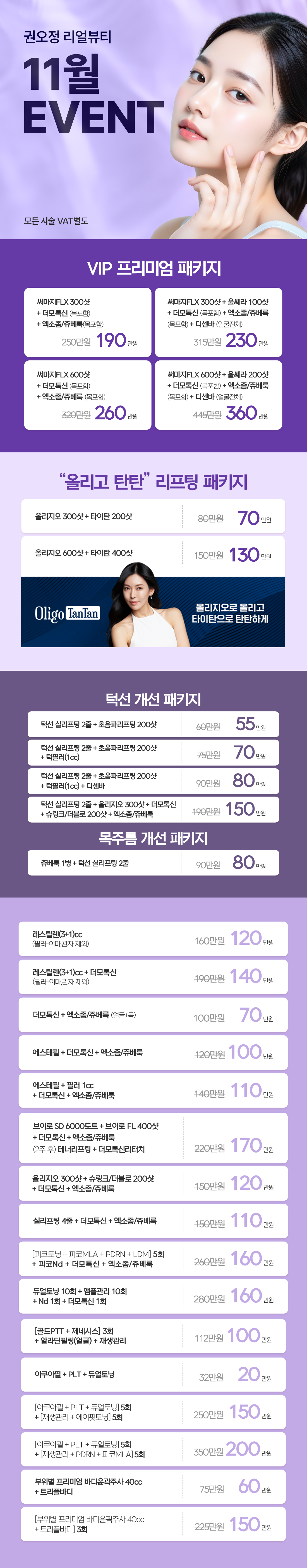 실시간 빠른상담 이름 연락처 010 011 017 018 019 개인정보취급방침 상담신청 권오정리얼뷰티의원 11월 이벤트 작성자 : 리얼뷰티 작성일 : 2025-10-30 조회수 : 1,239 목록