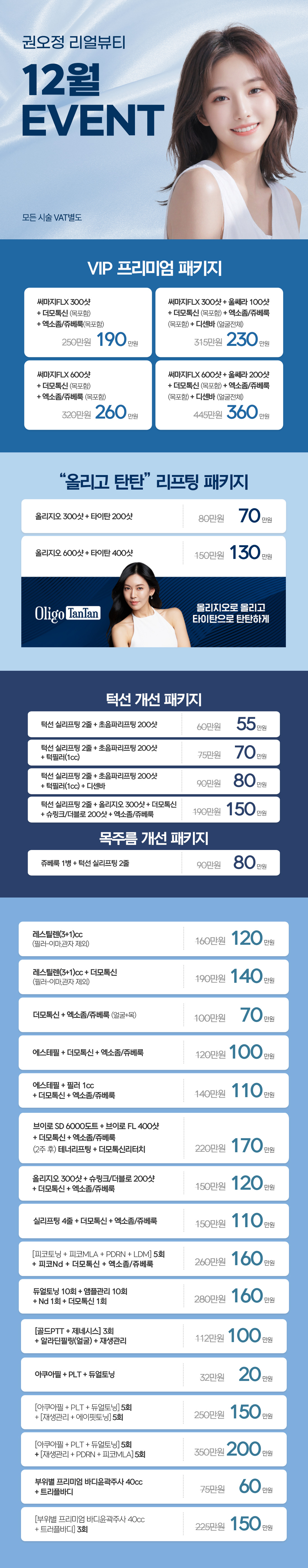 실시간 빠른상담 이름 연락처 010 011 017 018 019 개인정보취급방침 상담신청 권오정리얼뷰티의원 12월 이벤트 작성자 : 리얼뷰티 작성일 : 2025-11-28 조회수 : 985 목록